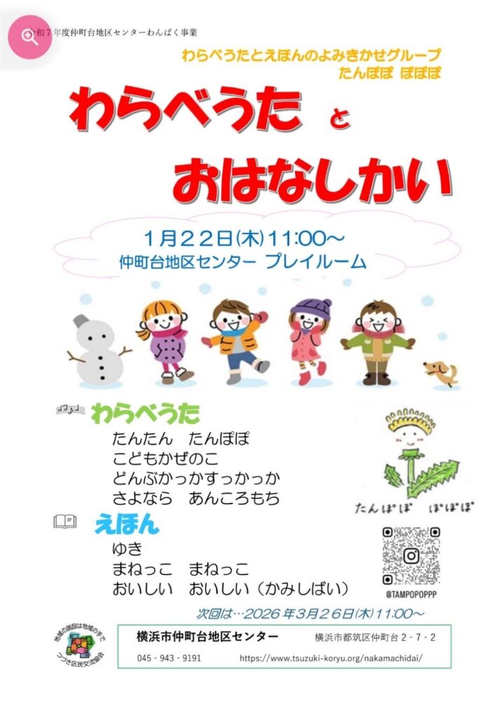 童歌と絵本のよみきかせグループ「たんぽぽ ぽぽぽ」ただいま、メンバー募集中!