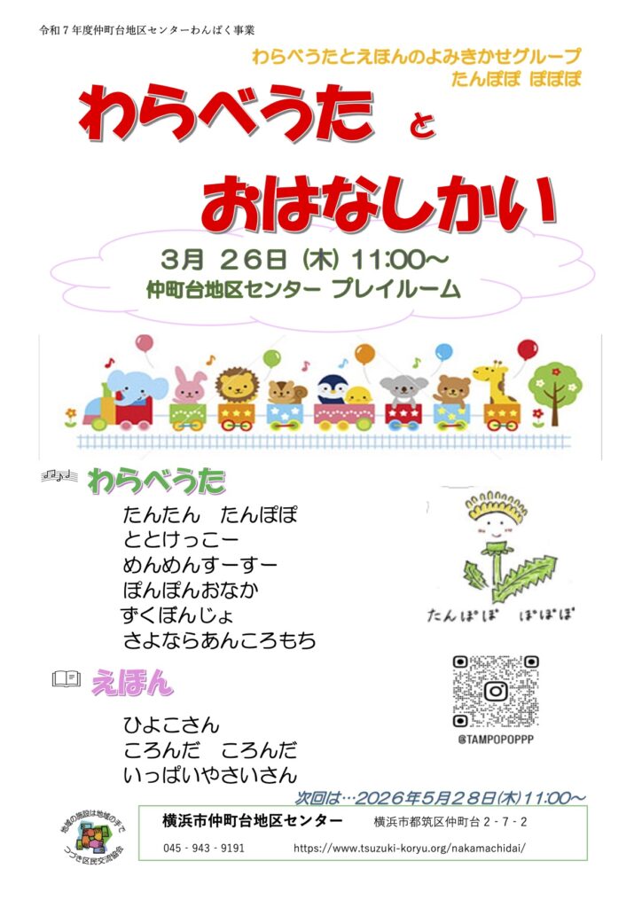 わらべうた・絵本・紙芝居のお話会サークル「たんぽぽ ぽぽぽ」メンバー募集中!